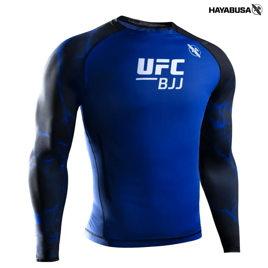 HAYABUSA rashguard, osmišljen kako bi zadovoljio zahtjeve elitnih UFC/BJJ grappler sportaša, pruža neusporedive performanse za vaše najteže treninge i natjecanja. Njegova prilagodljiva rastezljiva tkanina djeluje poput druge kože – lagana, prozračna i izrađena za zaštitu. Kompresijski kroj podržava oporavak mišića i potiče potpunu pokretljivost, tako da se možete kotrljati bez ograničenja. Ostanite hladni, ostanite zaključani i suočite se sa svakim izazovom u službenom UFC BJJ rash gardu.