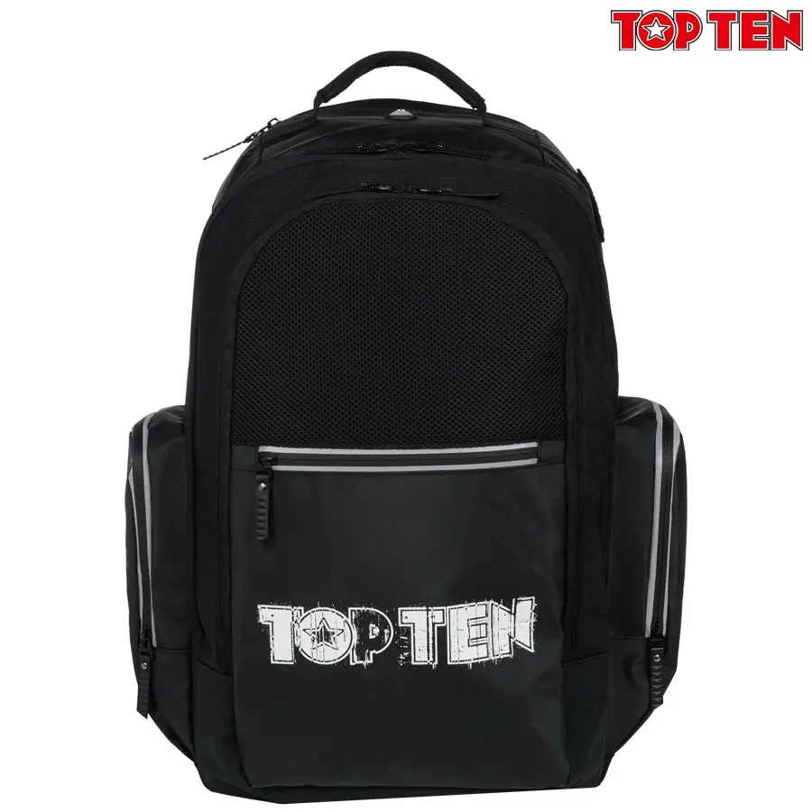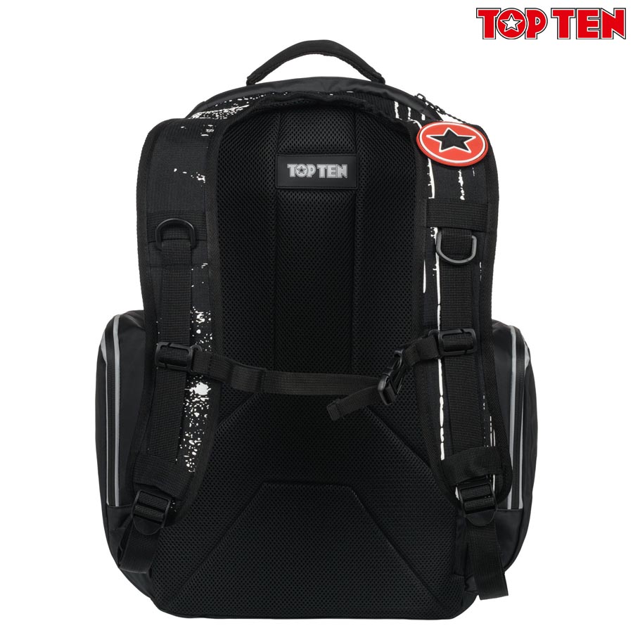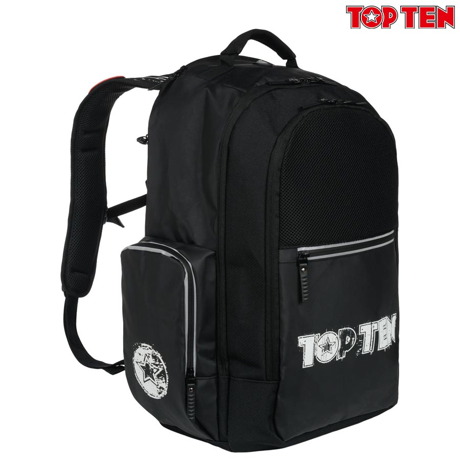 TOP TEN sportski ruksak model “COOL FIGHTER” sastoji se od nekoliko pretinca kako bi stavili što više Vaših stvari. Vanjski bočni džepovi omogućavaju Vam dodatno spremanje manjih predmeta poput bandaža, štitnika za zube. Naramenice i stražnji dio ruksaka pružaju udobnost prilikom nošenja. Reflektirajuće trake osiguravaju dodatnu sigurnost za avanture u mraku. TOP TEN dizajn i završna obrada jamče Vam da ćete ruksak nositi dugi niz godina. Preporučamo za treninge jer možete staviti sve stvari za Kickboxing, Taekwon-Do, Muay Thai, Boxing, MMA, BJJ, Fitness, Training, Krav Maga, Ninjutsu, Jiu-Jitsu, Judo, Ju-Jitsu, Kung Fu, Sambo, Aikido, Kendo, Wu Shu, teretanu…